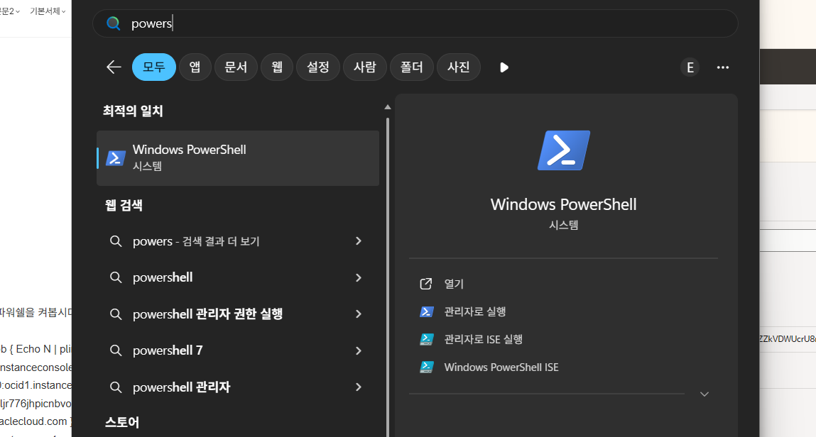 그리고 파워쉘을 켜봅시다 (관리자 권한으로 실행)