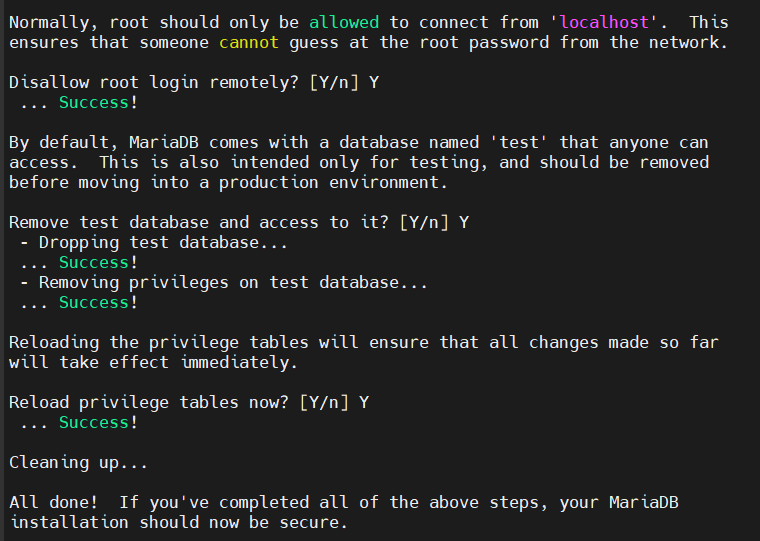 sudo mysql_secure_installation질문 나오면 이렇게: