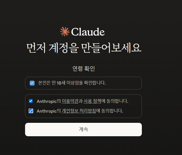구글 계정으로 로그인하면 claude 이전 사용자가 아니라면, 가입하기가 활성화된다