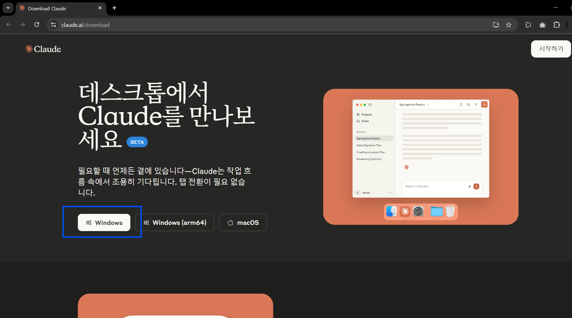 클로드다운로드 여기를 클릭하여 클로드 desktop을 먼저 다운로드하자