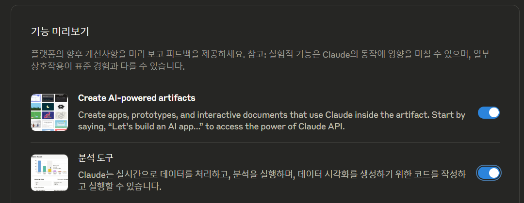 기능 미리보기 활성화 진행