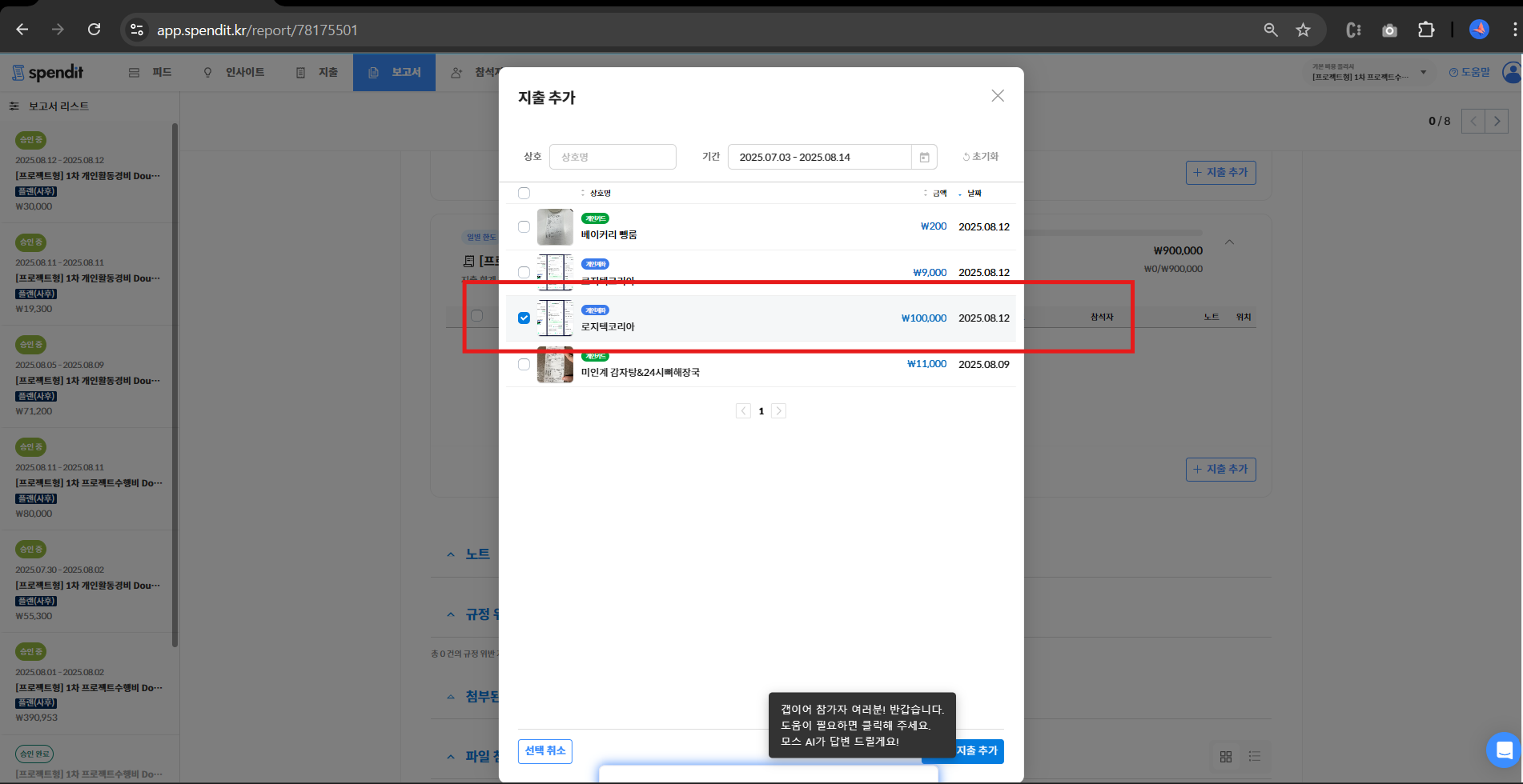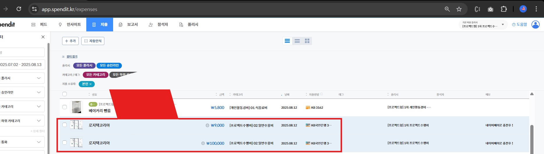 아까 스플릿한 항목이 뜰텐데 해당하는 비용 만큼만 작성해줍니다