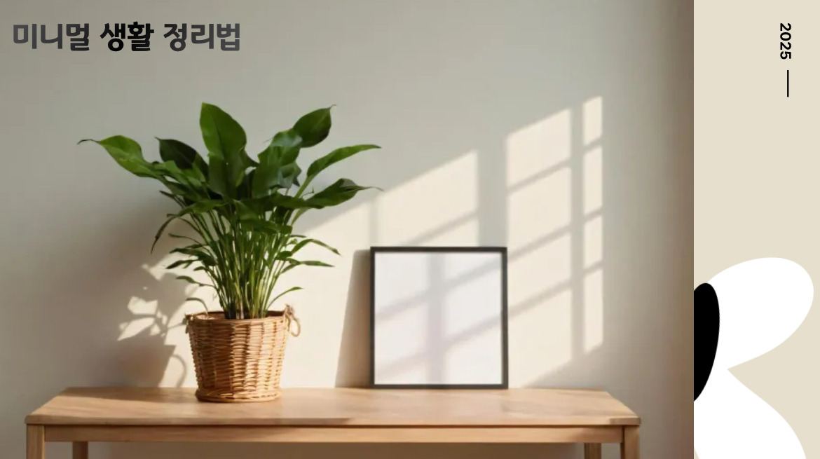 집안에 물건이 쌓이다 보면 동선이 불편해지고 공간이 좁아진 느낌을 받습니다. 특히 2025년처럼 1인 가구나 소형 주택이 늘어나는 시대에는 효율적인 정리정돈이 더 중요해졌습니다. 미니멀 생활 정리법은 단순히 청소가 아니라, 불필요한 물건을 줄이고 꼭 필요한 것만 남겨 공간과 마음의 여유를 만드는 실천 방법입니다. 이 글에서는 초보자도 쉽게 따라 할 수 있는 정리 원칙과 단계별 가이드를 정리했습니다.