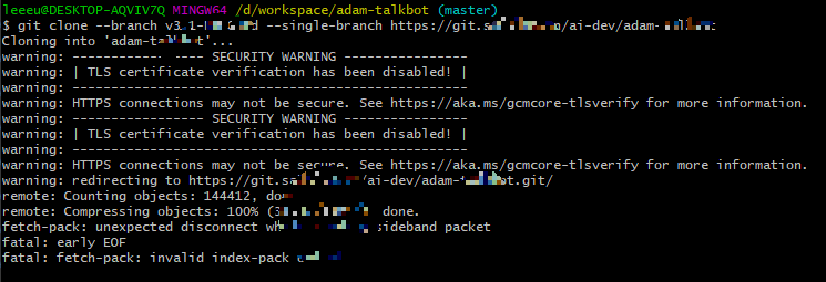 gitlab에서 clone을 진행하다가, 전체가 clone 받아진 듯하더니 아래와 같은 오류를 남기며 죽어버렸다..