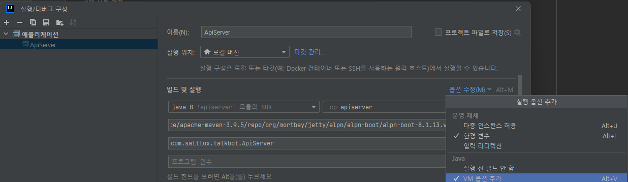 Eclipse에서는 VM argument라고 하고, Intellj는 VM option이라고 한다.